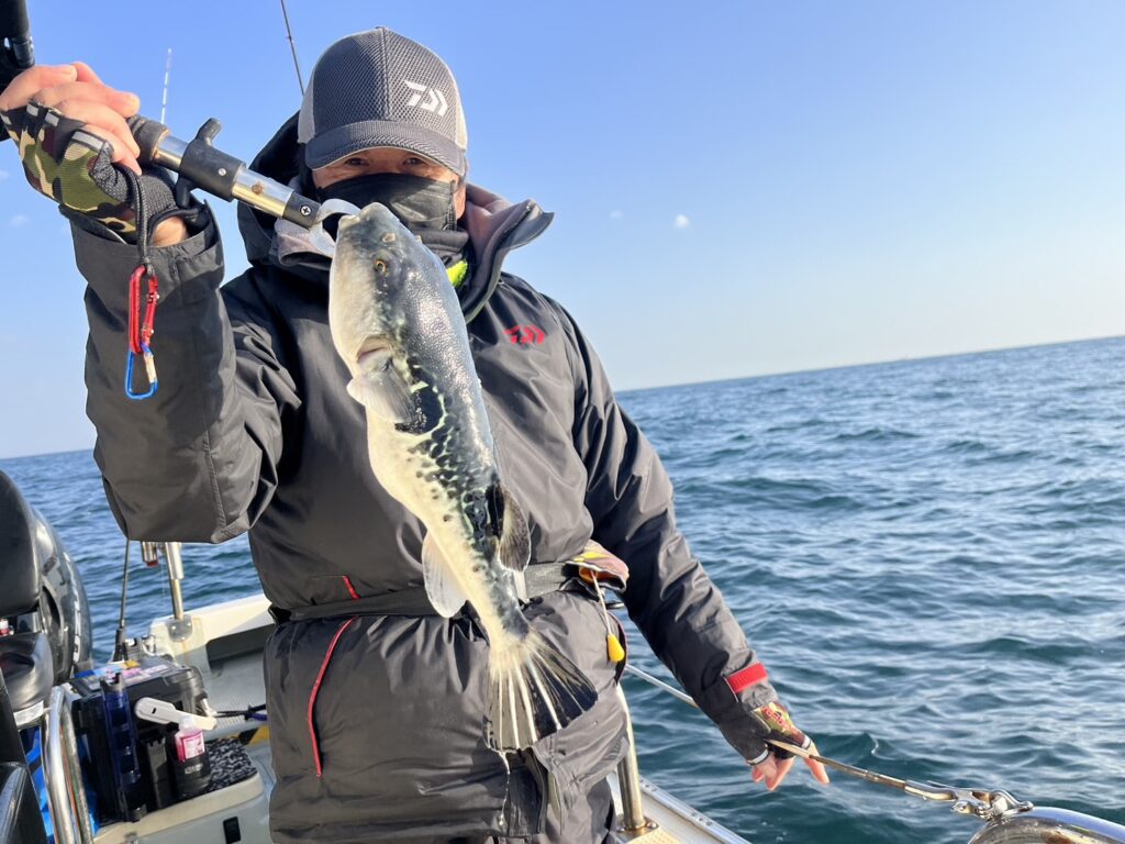 本日の釣果は、真鯛、ホウボウ、カナガシラ、サワラ、スズキ、ワラサ、ギガアジ、マサバ、メジ、ウルメイワシ、トラフグ、マフグ、ショウサイフグ、マゴチ、マゾイ、カサゴ…16目。