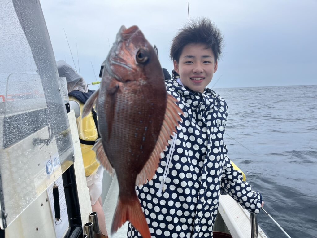 開始早々ワラサがヒットすると、そのタイミングで真鯛もキャッチ!