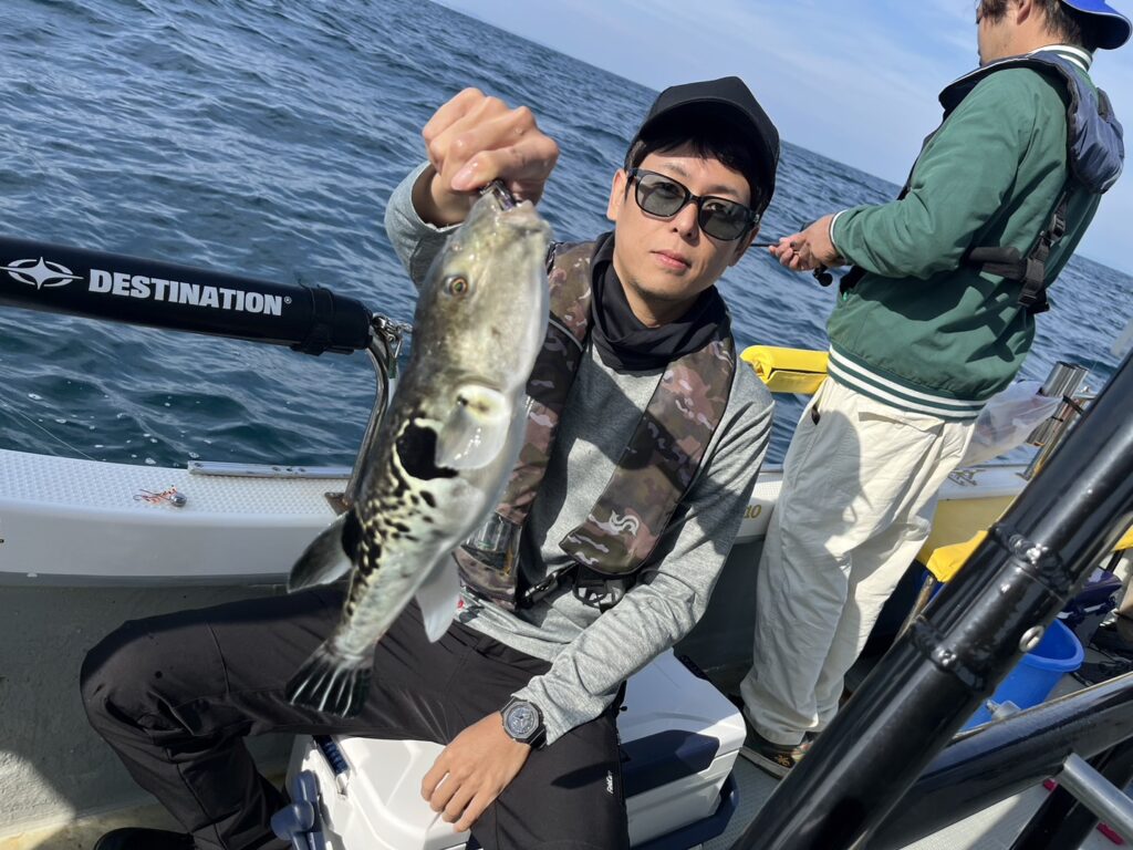 本日の釣果は、真鯛、ホウボウ、カナガシラ、ヒラメ、マゴチ、イシモチ、ワラサ、マサバ、アジ、メジ、スズキ、トラフグ、ショウサイフグ、サバフグ…14目。